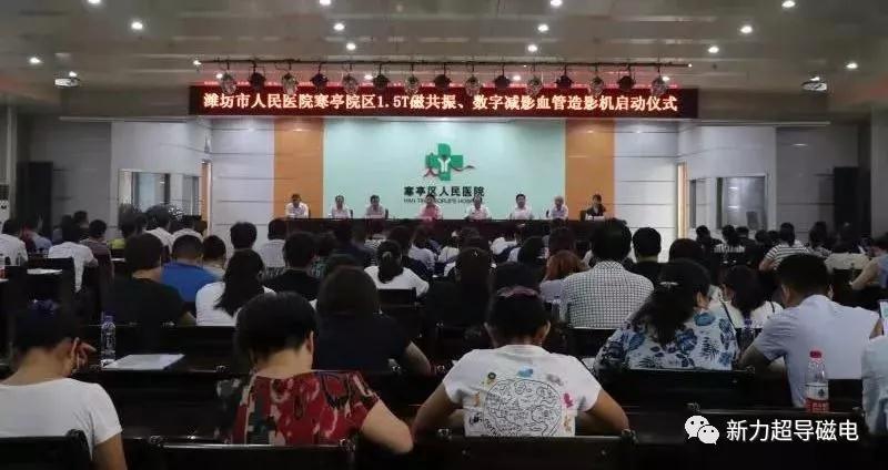 2019年8月27日,濰坊新力超導公司中標的寒亭區人民醫院1.5T超導磁共振啟動儀式在寒亭區人民醫院舉行。開機儀式在濰坊市人民醫院寒亭院區大會議室舉行,大會由寒亭院區院長秦德春院長主持。濰坊市衛健委黨組書記、主任吳海源、寒亭區政府副區長李培進、濰坊市人民醫院黨委書記張曉乙,寒亭區衛健局黨組書記、局長李中強、寒亭院區黨委書記豐義寬、山東省醫學影像研究所教授劉作勤,濰坊醫學院附屬醫院教授曹貴文,濰坊市人民醫院教授耿海,山東省政協常委、新力公司董事長王兆連等出席會議,區醫聯體成員單位負責人及醫院全體干部職工代表200余人參加會議。
